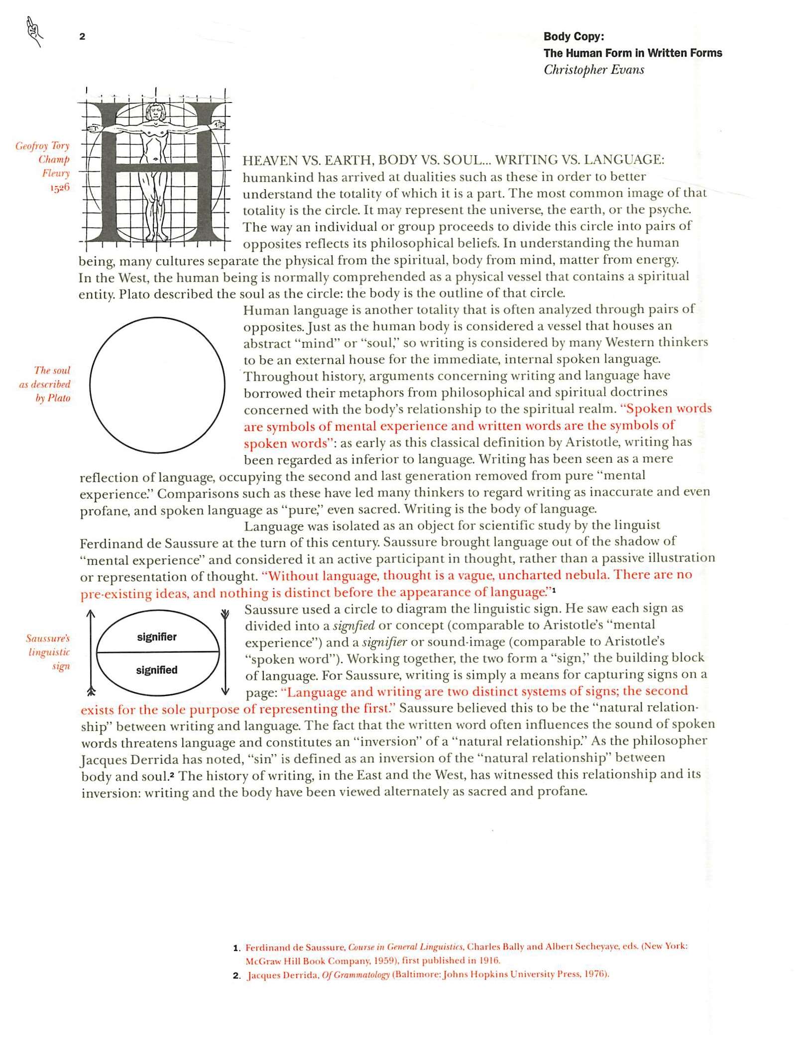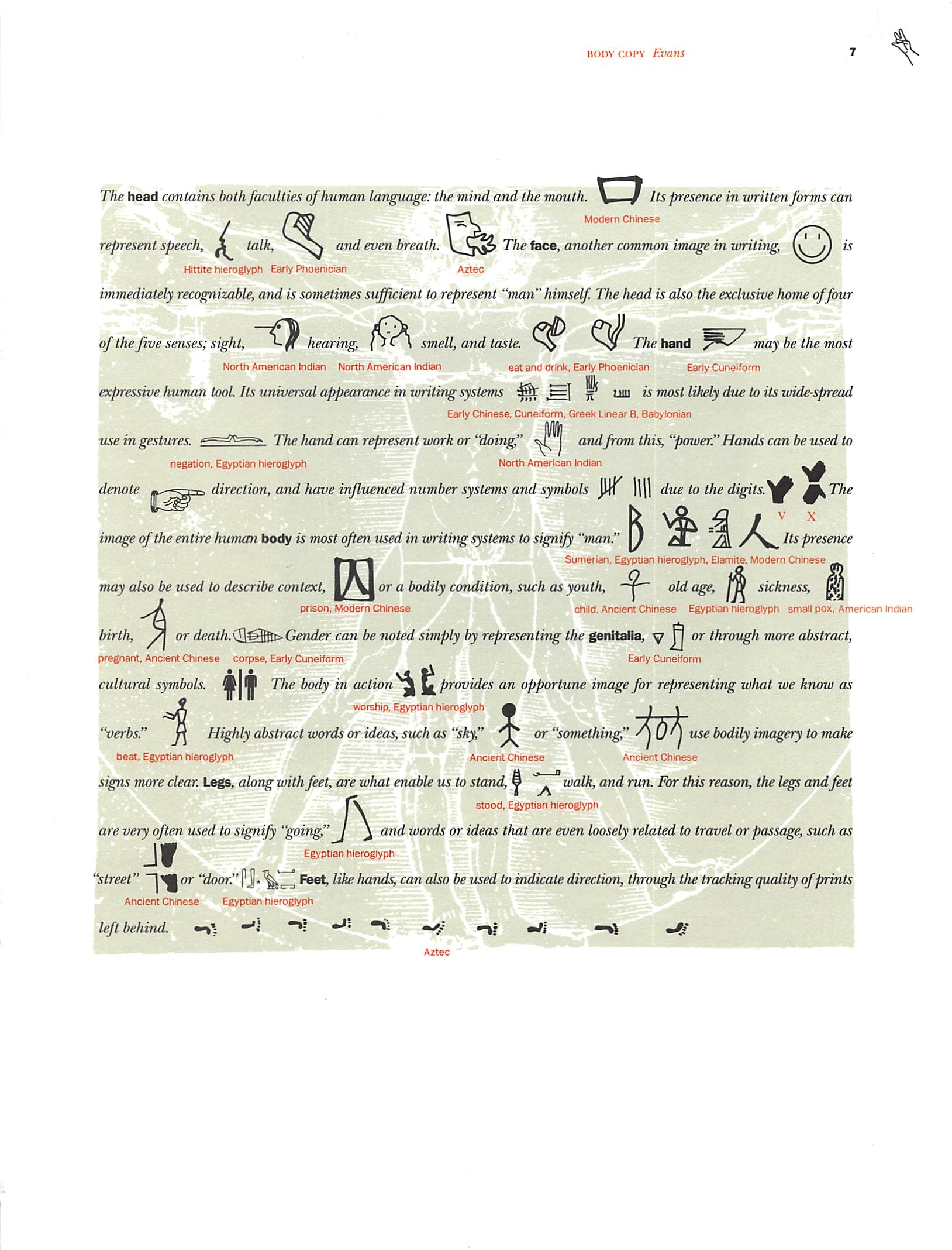Christopher Evans compared the conceptual opposition between “speech” and “writing” with the opposition between “body” and “soul,” and charted the presence of the body in various Western and Eastern writing systems.