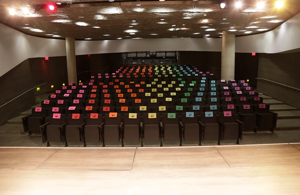 The auditorium before the lecture series with programs in place.
